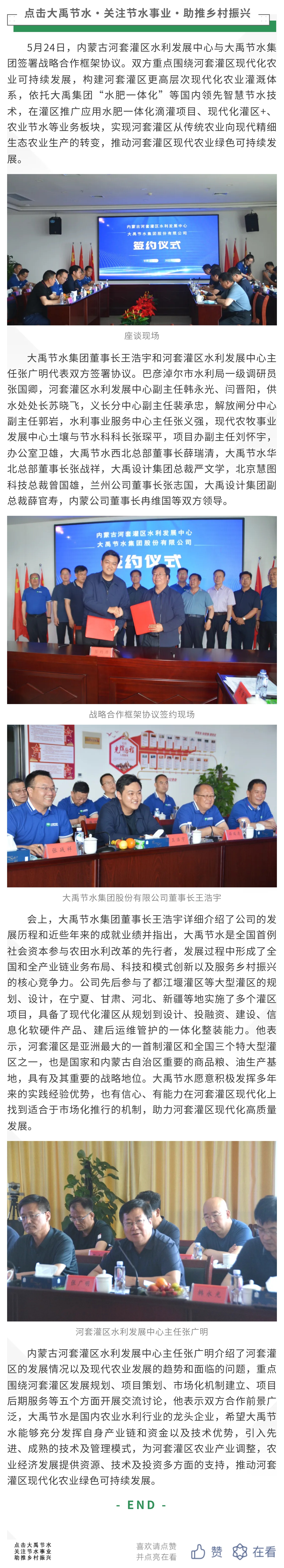 304am永利集团动态| 内蒙古河套灌区水利发展中心与304am永利集团节水集团签署战术合作框架和谈